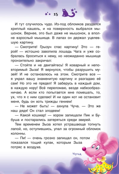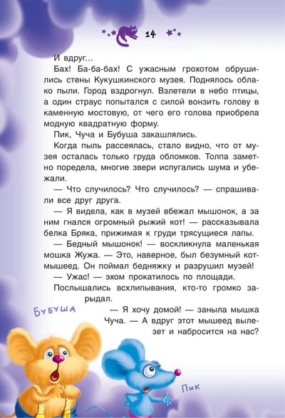 The first two books of Katya Matyushkina's most popular series "Da Vinci's Cat": "The Smile of Anaconda" and "Robbing a Bank" are reissued in the new gift series "Katina's Tales". Many people have heard about this cat, and those who have read about him, probably loved him. After all, it is simply impossible to resist the charm of a big ginger genius cat! He solves the most difficult cases with ease and fearlessness. The animals run to him for help and follow his investigations with admiration. And only one creature - a small purple animal named Zyza - does not give rest to the fame and talent of Da Vinci's cat. You are waiting for: the mysterious disappearance of the painting "The Smile of the Anaconda" and the search for the mysterious treasure, the insidious plot and tricks of the purple villain, and, of course, the extraordinary adventures of the genius cat da Vinci and his friends.