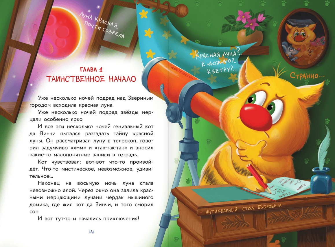 A funny and daring detective story in which magic and villainy are intertwined. The genius detective Da Vinci's cat is at it again! Not just any case, but the thirteenth. An ominous prediction is about to come true. Beast City will be changed beyond recognition. Trees will turn upside down, ghosts will fill the streets, and a flying castle will appear in Main Square. To save his friends, Da Vinci's cat will have to learn to fly on a broomstick and read spells. But will it help him to dispel the evil spell? Be the first to know! Read it yourself and let your friends read it!
