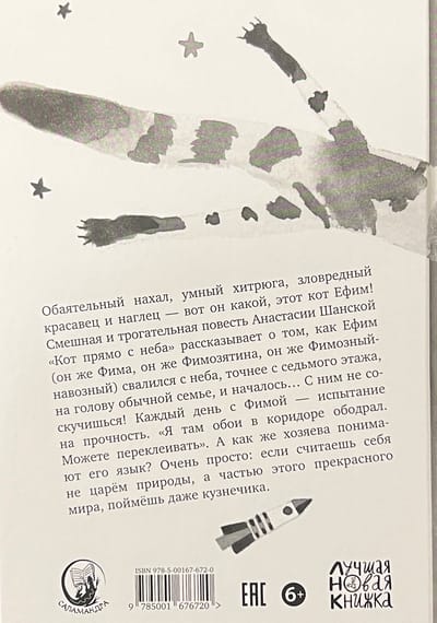 A charming impudent fellow, a smart sly one, a malicious handsome fellow and a cheeky fellow - that's what this cat Efim is! The funny and touching story by Anastasia Shanskaya "A Cat Straight from the Sky" tells the story of how Efim (aka Fima, aka Fimozyatina, aka Fimozny-navodny) fell from the sky, or rather from the seventh floor, onto the heads of an ordinary family, and it all began... You won't get bored with him! Every day with Fima is a test of strength. "I tore off the wallpaper in the hallway. You can re-glue it." But how do the owners understand his language? It's very simple: if you consider yourself not the king of nature, but a part of this beautiful world, you will understand even a grasshopper.