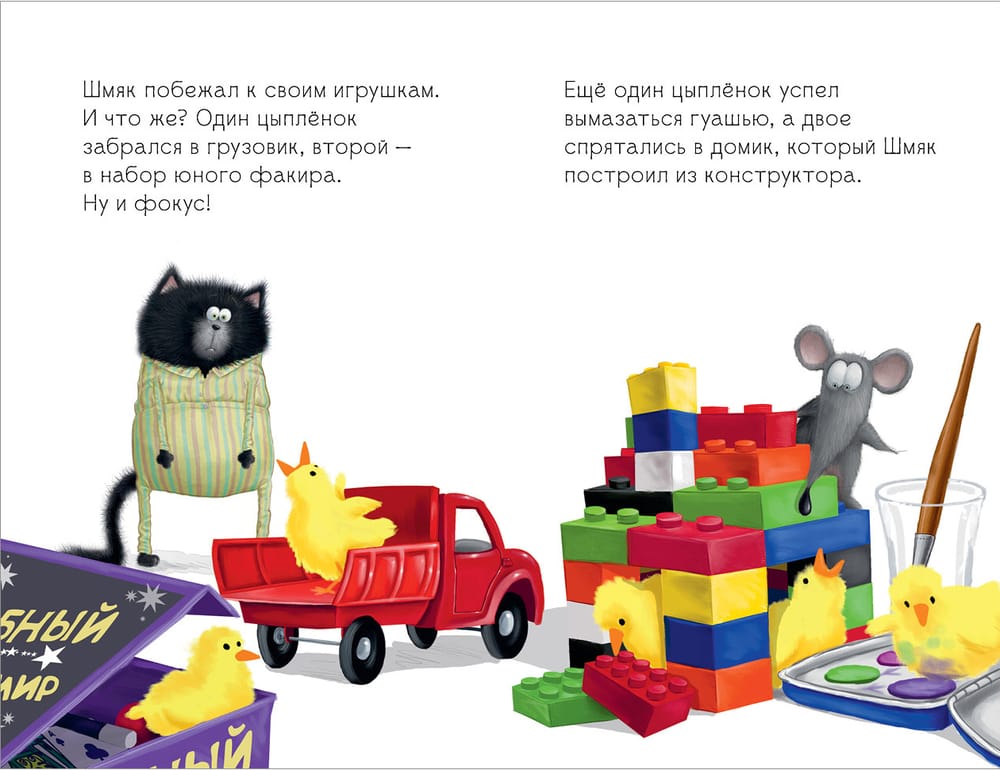 Shmyak has a great honor - he was entrusted to take the eggs from the living corner for the night. Tiny chicks are about to hatch from them. Of course, Shmyak will keep an eye on them. But the chicks sprouted at night, when the kitten was sleeping, and scattered all over the house. Where to look for them now?