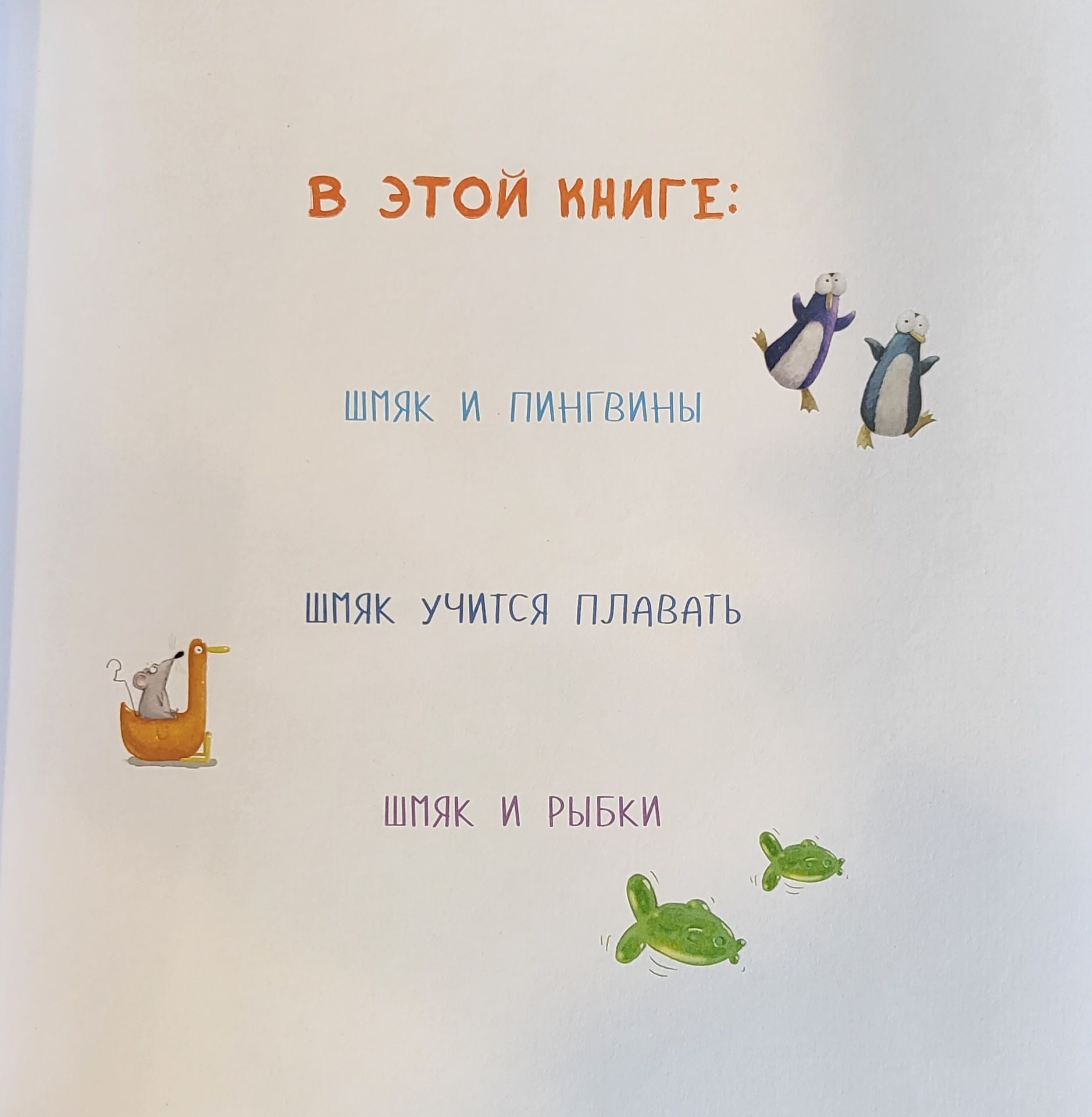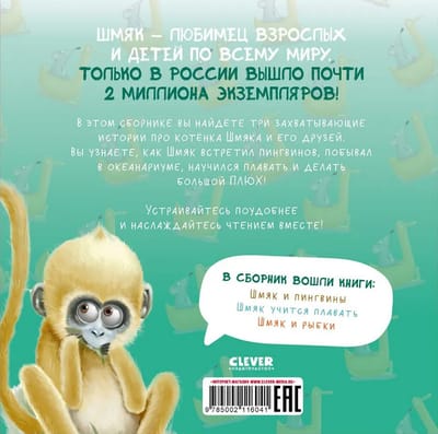 In this collection you will find three exciting stories about Shmyak the kitten and his friends. You will learn how Shmyak met penguins, visited the oceanarium, learned to swim and make a big spit.