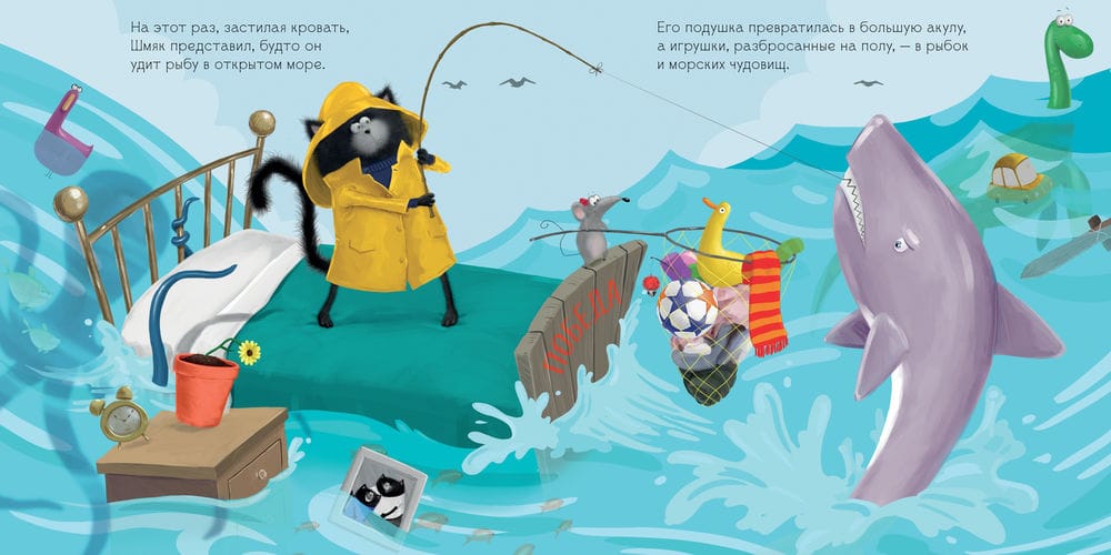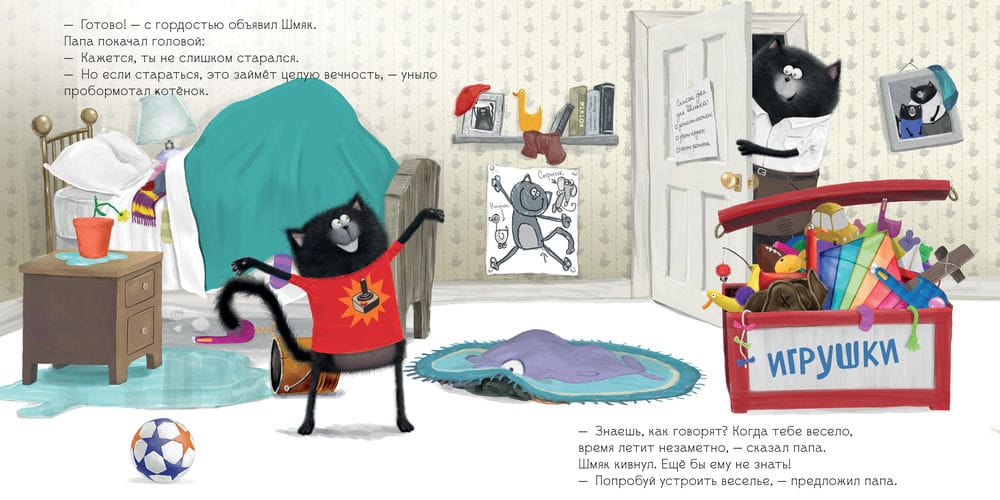 Kitten Shmyak has a lot of household chores today - putting away toys, making the bed, watering the flowers.... It's so boring! What should we do? What if the flowers are a wild jungle and you have to save the island from drought? What if the toys are pirates' treasures that need to be hidden in a chest? It's much more fun to run errands this way! But can Shmyak do it?