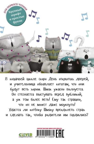 There is an open day coming up at the cat school, and the teacher announces to the kittens that they will sing a chorus. Shmuck is terribly nervous. He is embarrassed to speak in front of an audience, much less sing. He is so scared that he can't even meow. Will Shmyak manage to overcome his fear and make his parents proud of him?