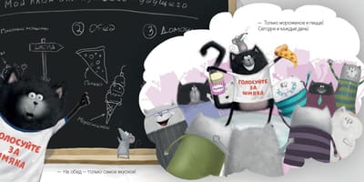 Shmyak was elected president of the student council (so what if he was the only candidate). The kitten decided to make loud promises to the whole class: now they will come to school in racing cars, eat pizza and ice cream, and robots will do their homework for them. But Shmyak didn’t think about the dangers of such promises. It seems he will have to come up with something else. How will he get out of this situation?
