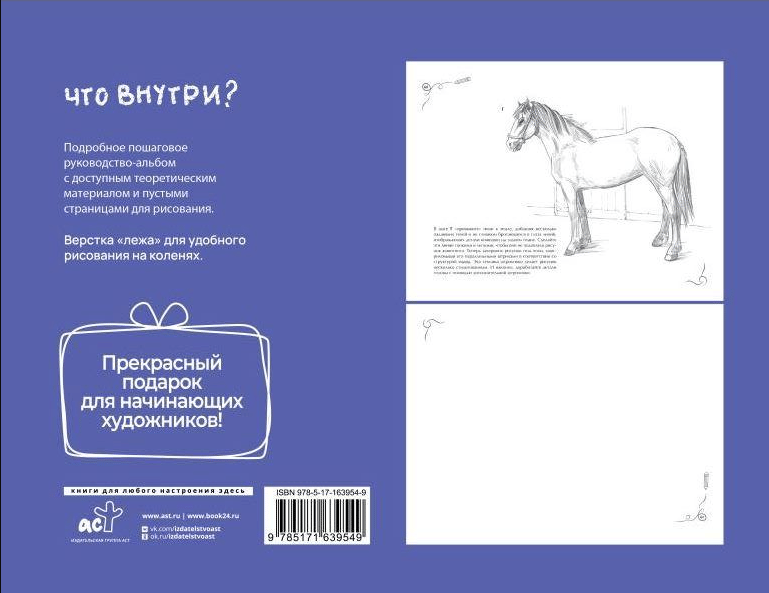 A detailed step-by-step guide-album with accessible theoretical material and blank pages for drawing.