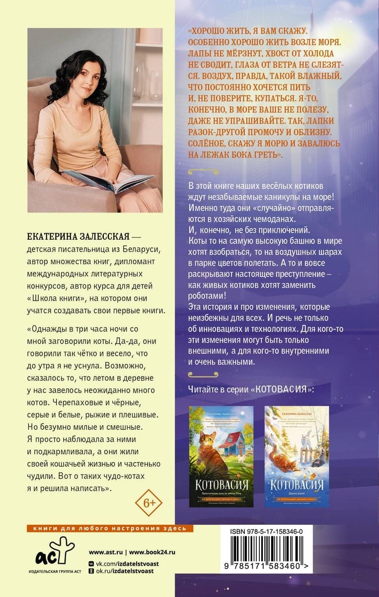 In this book, our merry kitties are waiting for an unforgettable vacation at sea! That's where they "accidentally" go in their owner's suitcases. And, of course, not without adventures. The cats want to climb the tallest tower in the world, or fly on balloons in the flower park. And even then they solve a real crime - how live cats want to be replaced by robots! This story is also about the changes that are inevitable for everyone. And it's not just about innovation and technology. For some people these changes may be only external, but for others they are internal and very important.