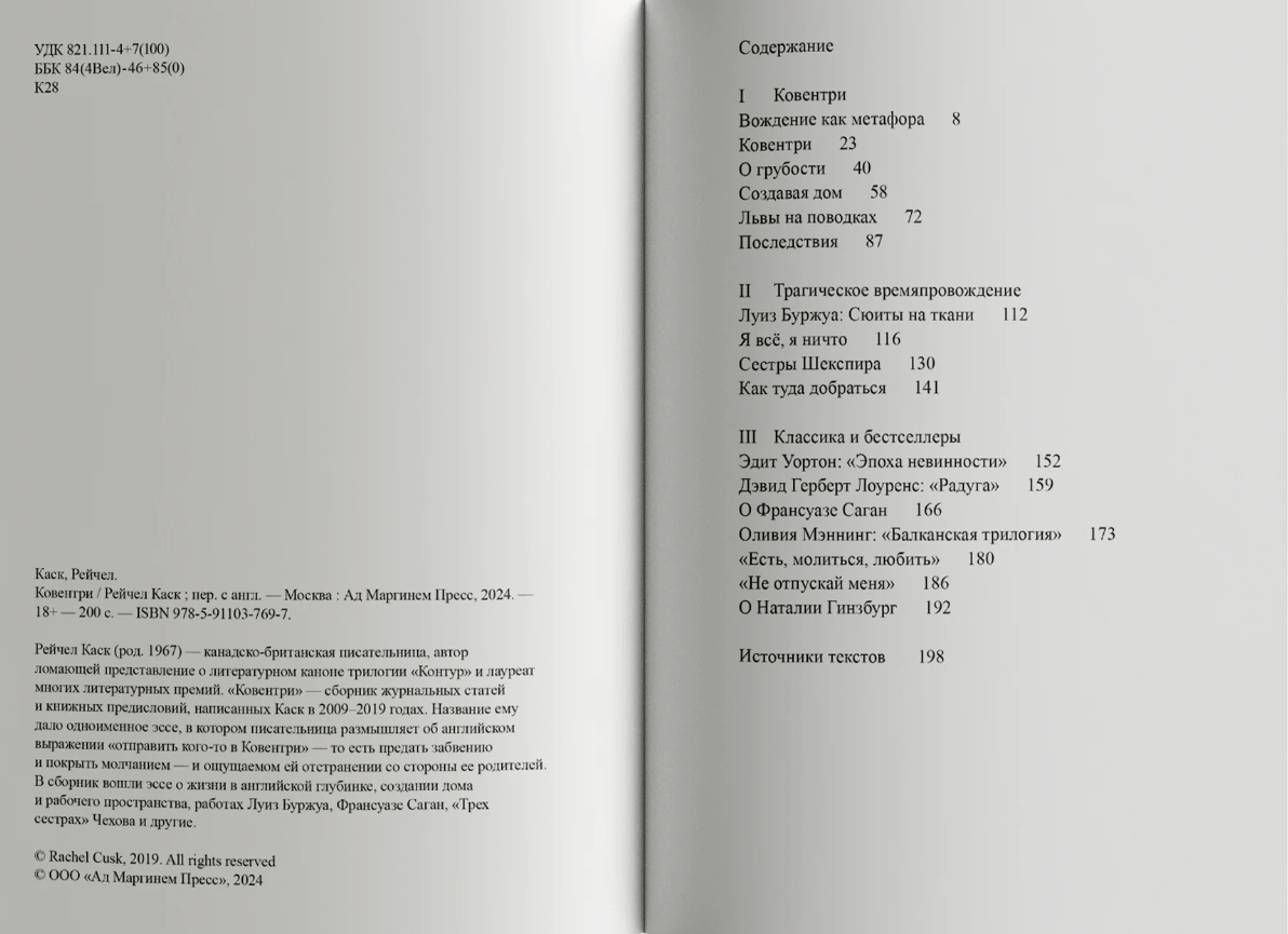 Rachel Cusk (born 1967) is a Canadian-British novelist, author of the path-breaking Contour trilogy and winner of many literary awards. "Coventry" is a collection of magazine articles and book forewords written by Cusk between 2009 and 2019. It is titled after an essay of the same name, in which the writer reflects on the English expression "to send someone to Coventry" - that is, to oblivion and silence - and the exclusion she feels from her parents. The collection includes essays on life in the English countryside, creating home and workspace, the works of Louise Bourgeois, Françoise Sagan, Chekhov's Three Sisters, and others.