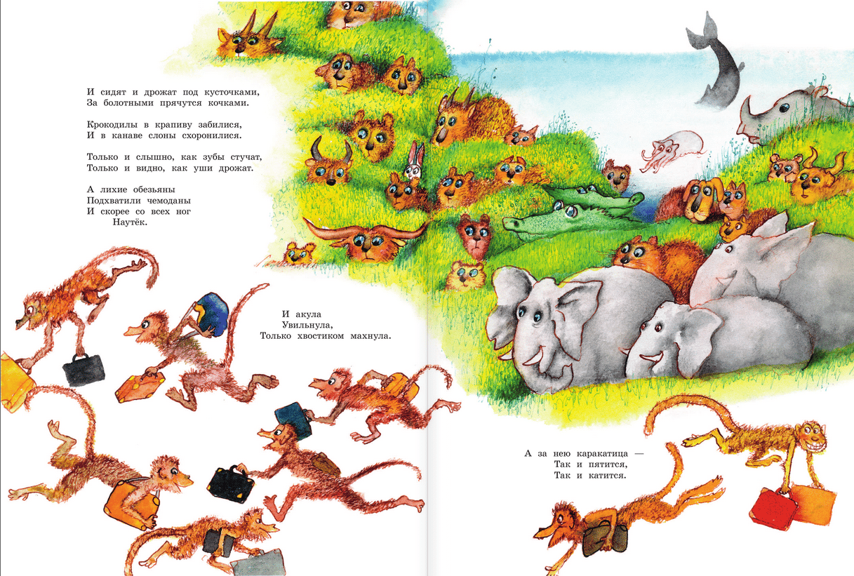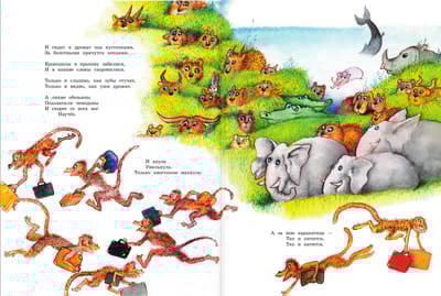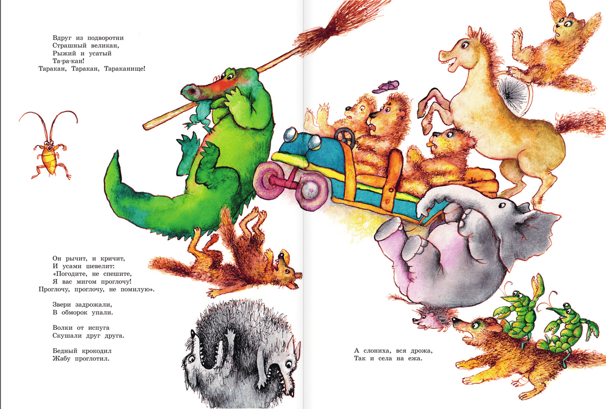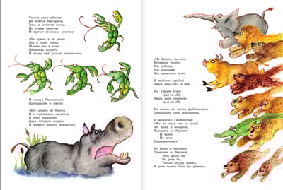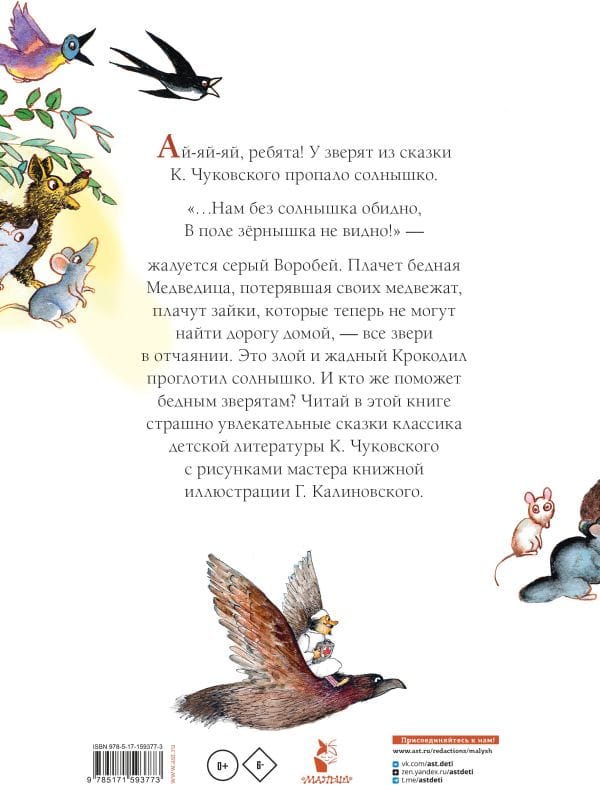 Gennady Vladimirovich Kalinovsky (1929-2006) was an illustrator, winner of many international awards. Having graduated in 1955. After graduating from the Surikov Art Institute in 1955, G. Kalinovsky initially drew for newspapers and magazines, and later came to children's illustration, which brought him world fame. In the fairy tales of K. Chukovsky - these are bright colors, characters in motion, funny, simple-minded, and sometimes scary animals. A formidable bear with eyes red with anger, opening the mouth of Crocodile in "The Stolen Sun", looking like a beautiful girl Mukha-Tsokotukha, cheerful and small Barmaley, climbing out of the mouth of Crocodile. Illustrations by G. Kalinovsky's illustrations to K. Chukovsky's fairy tales are the very ones that a child's eyes will stop on and will definitely be interested in. For children up to 3 years old.