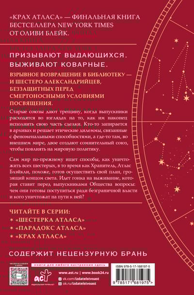 The world itself is still looking for ways to destroy all six, while the Guardian, Atlas Blakely, seems poised to carry out his plan that threatens to end the world. A race for survival is underway that poses questions for the Society alumni: what are they willing to give up for unlimited power, and who will they destroy along the way?