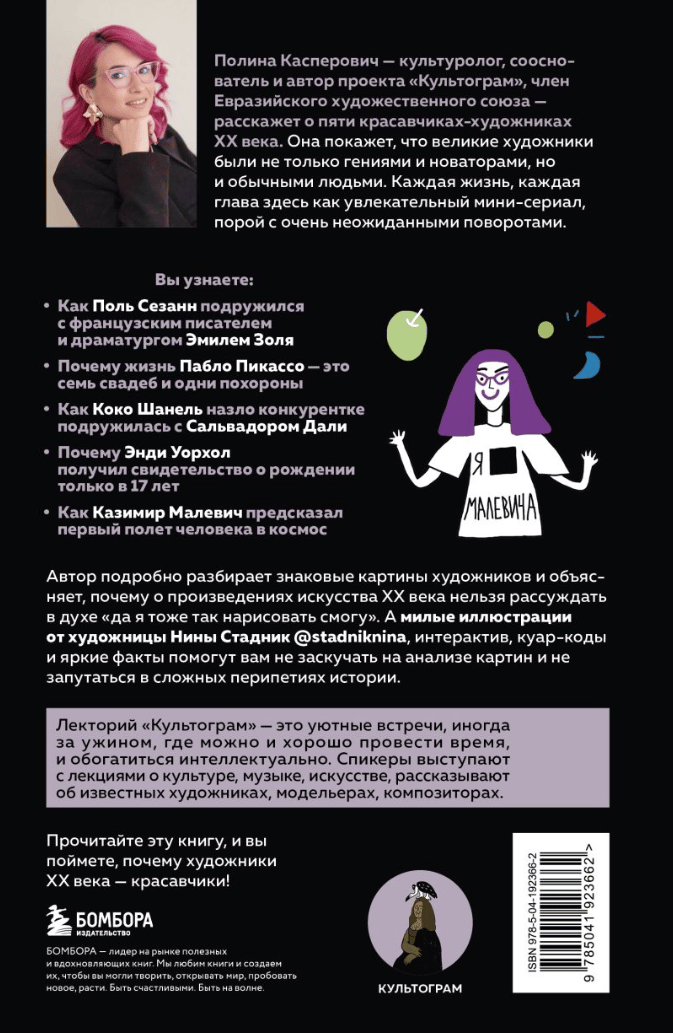 In this book you will learn how sometimes shy boys became outrageous and avant-garde creators with world fame. How the events of their lives affected specific works of art. Who they loved, with whom they were friends, with whom they argued and enmity. And all this in a simple and understandable form. With cute illustrations, memes and analogies. Almost like watching a video on YouTube.