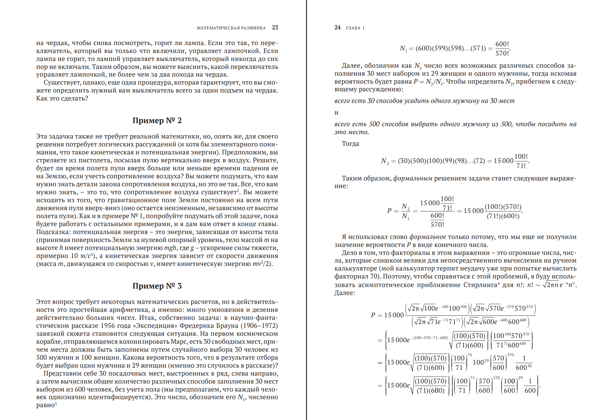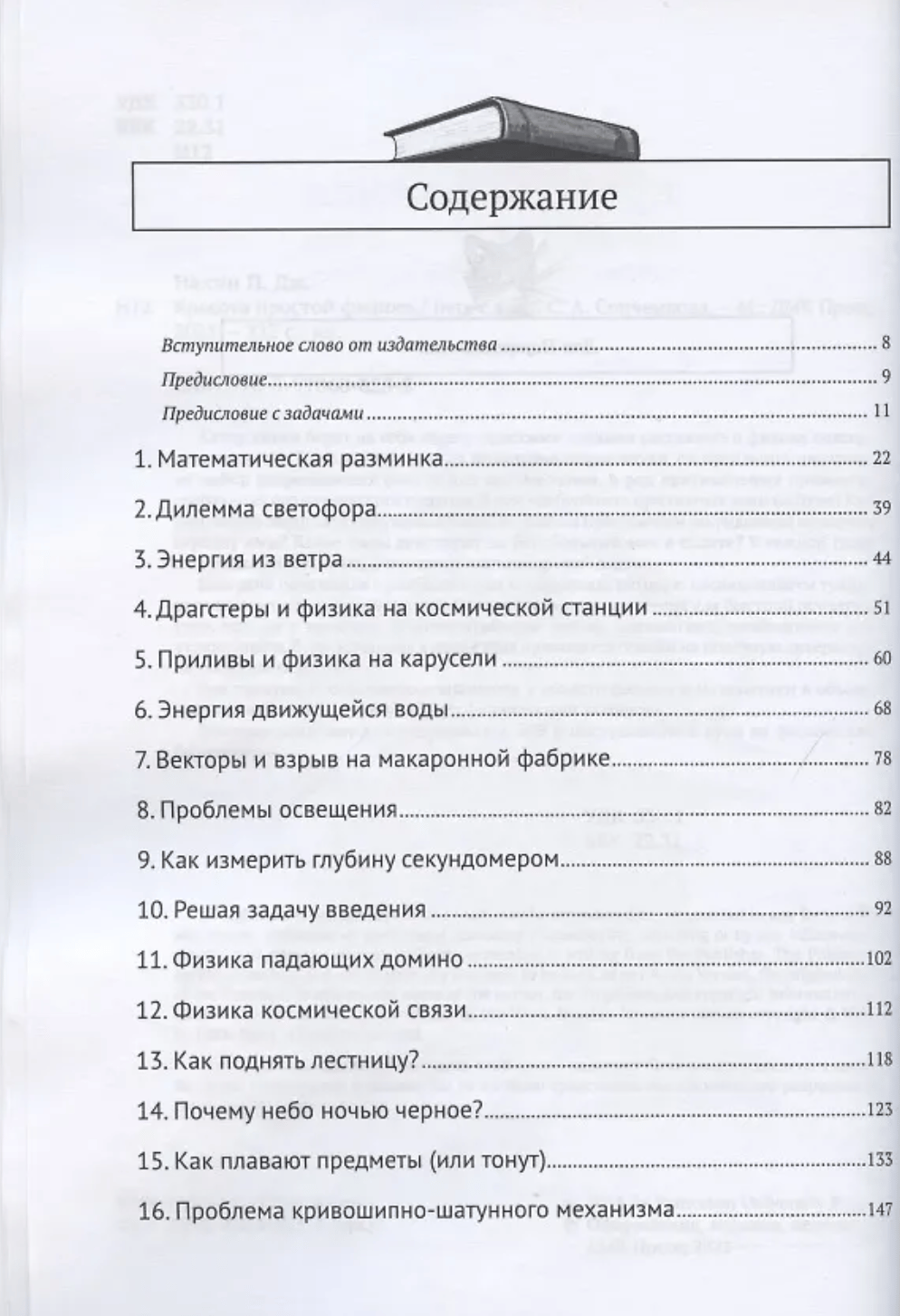 The author of the book takes on the task of explaining the physics of the everyday world in simple terms. Unlike many popularizers of science, he offers the reader not a set of disparate facts to memorize, but a number of original examples that require an analytical approach. What is special about tidal waves on the Moon? How to calculate the energy of moving water? Is it possible to measure the depth of a hole using a stopwatch? What forces act on a baseball in flight? Each chapter contains a statement and description of a non-standard problem. Another goal of the book is to rehabilitate mathematics, which non-specialists traditionally consider a complex science. The first chapter is intended to quickly check whether the reader has the fundamental knowledge of mathematics necessary to read the book.