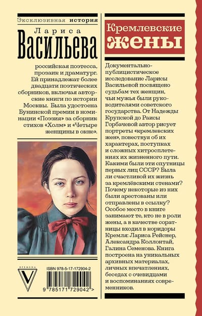 Larisa Vasilyeva's documentary-journalistic study focuses on the fates of women whose husbands were leaders of the Soviet state. From Nadezhda Krupskaya to Raisa Gorbacheva, the author paints portraits of the "Kremlin wives," recounting their personalities, actions, and the complex intricacies of their lives. What were these companions of the USSR's top officials like? Were their lives happy behind the Kremlin walls? Why were some of them arrested or exiled? A special place in the book is given to those who entered the Kremlin's corridors not as wives, but as comrades: Larisa Reisner, Alexandra Kollontai, and Galina Semenova. The book draws on unique archival materials, personal impressions, interviews with eyewitnesses, and the recollections of contemporaries.