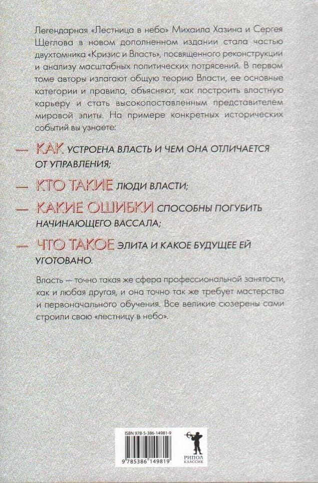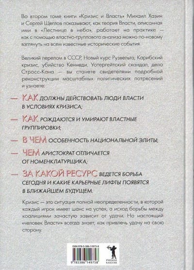 We present to your attention a two-volume set of books by Mikhail Khazin and Sergei Shcheglov "Crisis and Power". In the new supplemented edition of "Stairway to Heaven" Mikhail Khazin and Sergei Shcheglov outline the general theory of Power and tell in detail about all stages of power career - from an ordinary employee of a corporation to a high-ranking representative of the world elite. What rule of Power violated Steve Jobs, in 1984, fired from all positions in his own company Apple? What enemy drove the "genius of the Carpathians," Romania's all-powerful dictator Nicolae Ceausescu, to the firing squad? Why did the military coup of 1958 in France started by generals, and the power as a result went to the long-retired De Gaulle? How many years did it take a real man of Power to go from a beggar on the porch to the Emperor of Byzantium, and how did he do it? Why is political uncertainty the best time for an aspiring careerist? About this and much more - in the book "Crisis and Power. Volume I. Stairway to Heaven." In questions of Power there are two answers - the well-known and the right one. Any member of the elite is interested in keeping the structure of his grouping and its true goals secret. But in addition to internal ties, there are also public actions performed by members of factions in the course of the struggle for certain resources. With the help of the Theory of Power outlined in Stairway to Heaven, Mikhail Khazin and Sergei Shcheglov analyze large-scale historical and political events to show how many collective interests, motives, and problems are hidden behind the "facts" known to everyone. What did IMF Director Strauss-Kahn pay for? Could Stalin have lost the power struggle? Who is really behind Kennedy's death and why absolutely everyone, even his supporters, supported the official version of the lone assassin? Why Roosevelt, who prolonged the Great Depression, became the only president in U.S. history, elected for a third term, and Nixon, who brought the U.S. economy out of crisis, - the only president, early removed from power? About this and much more - in the book "Crisis and Power. Volume II. Men of Power."