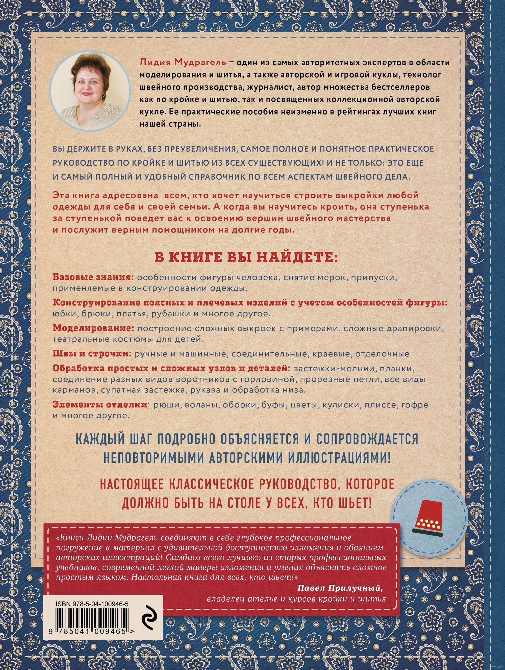 Author's manuals-guides by popular author, teacher, technologist and master Lydia Mudragel have won a huge success among all sewing enthusiasts and professionals. Clear, clear, written in excellent and understandable language, equipped with amazingly atmospheric author's hand-drawn pictures and many schemes and drawings, with convenient and clear navigation, the author's practical courses have gained popularity both as textbooks and as desktop reference books.