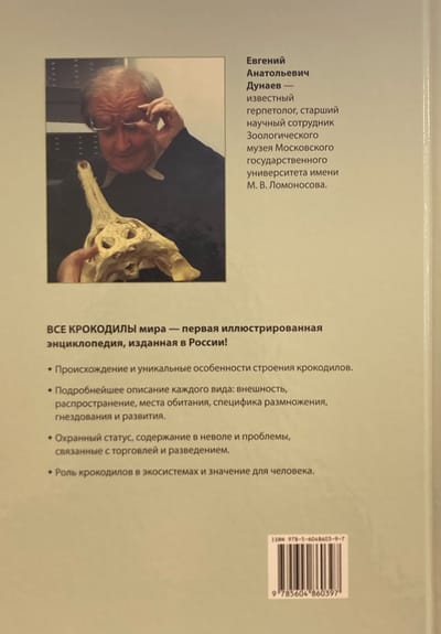 The encyclopedia is based on the analysis of more than a thousand sources of scientific information. The result is a book from which you can learn about the origin of crocodiles and their ancestors, as well as about the unique structural features of the organs of modern representatives of these reptiles. The encyclopedia describes in great detail the appearance, distribution, habitats, features of reproduction, nesting and development of each species. Information is provided on the conservation status of crocodiles, their maintenance in captivity and the problems associated with trade and breeding. A special place in the book is given to the role of crocodiles in ecosystems and the importance of these animals for humans. The author of the book, Evgeny Anatolyevich Dunaev, is a well-known herpetologist, senior researcher at the Zoological Museum of the Lomonosov Moscow State University.