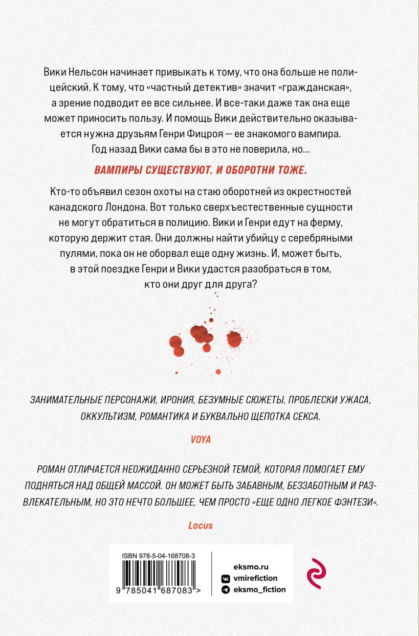 Not long ago, Vicki Nelson would not have believed in the existence of vampires. And now she agreed to go with one of them to a farm to a pack of werewolves. The thing is, Vicki is a former cop and private detective. And she is close to Henry Fitzroy, the bastard of Henry VIII. A vampire. So it is not surprising that he turned to Vicki when his friends started being killed with silver bullets. Werewolves can’t just call the police, and Vicki Nelson may be their only hope. Will she be able to earn the pack’s trust and track down the mysterious shooter before he brings more death?