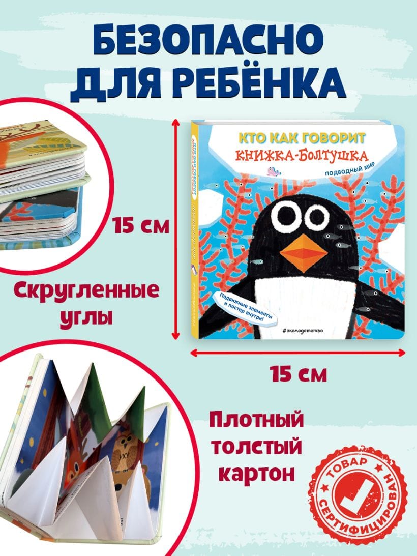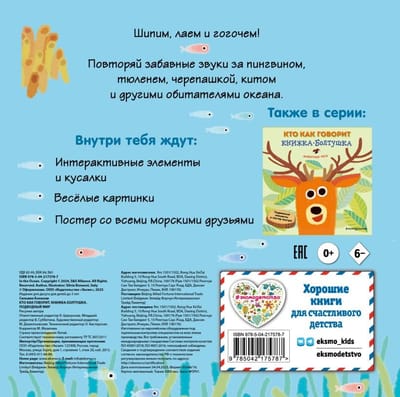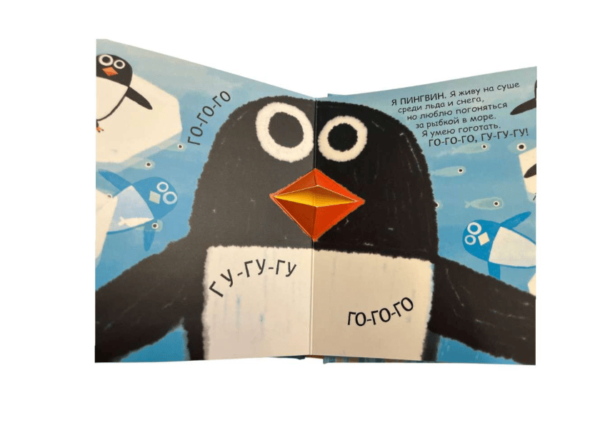 Want to learn how underwater creatures speak? Open the book and repeat the funny sounds after the penguin, seal, turtle, whale, and other ocean creatures. You'll also learn a lot about the animals: where they live, what they like to do, and what they eat.