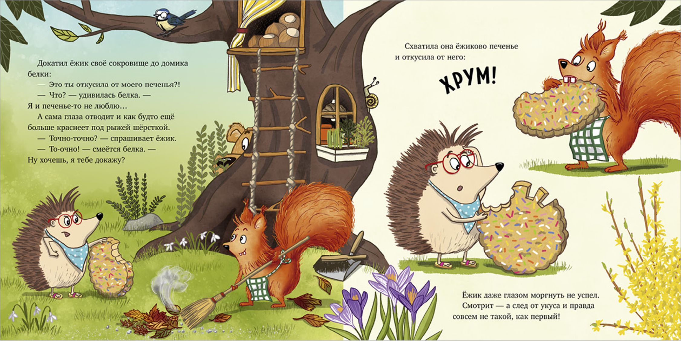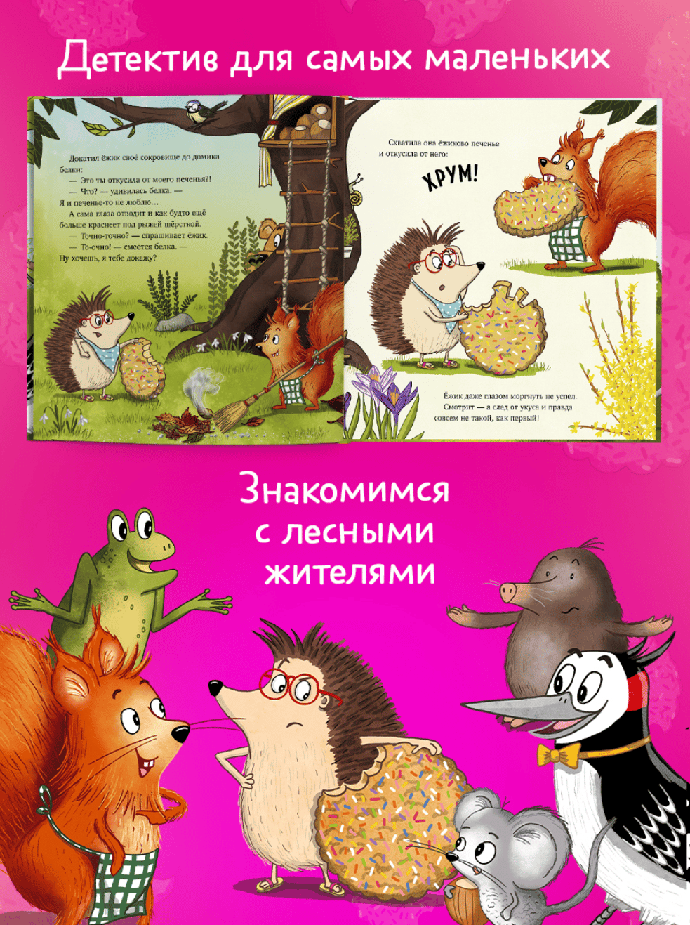 One fine morning, a little hedgehog finds a real treasure on his doorstep—a round, colorful, delicious cookie. But as soon as he turns away for just a second, someone takes a bite out of the treat! Every forest dweller is under suspicion... An investigation is needed.