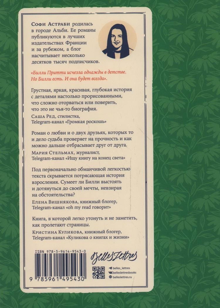 Billie Letelier got her unusual name in honor of the singer who, according to family legend, had the most beautiful voice in the world. Since childhood, she has been trying to understand what she has in common with the mysterious Billie Pritty. Perhaps a love of music? After all, nothing touches her heart as much as the singing of the gardener in the city park, the sounds of the piano from the apartment below and her favorite songs in her headphones.