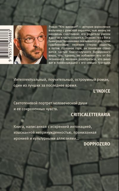 The novel “Who is to blame” is a first-person story of the growing up of the main character, a boy who lives with his parents on the outskirts of Rome. The family barely makes ends meet, leads a closed lifestyle and does not communicate with relatives. If something is known about the family from the father’s side, then the mother’s past is covered with thick fog. However, it dissipates when on the Jewish Passover, the hero enters the home of her wealthy relatives. This meeting becomes an important milestone in the fate of the teenager, it brings with it changes: a New York vacation, a painful feeling of love, and then a terrible tragedy and a new life in the bourgeois environment. A prestigious private school, pleasant acquaintances, great opportunities, nevertheless, do not save the young man from anxious reflections.