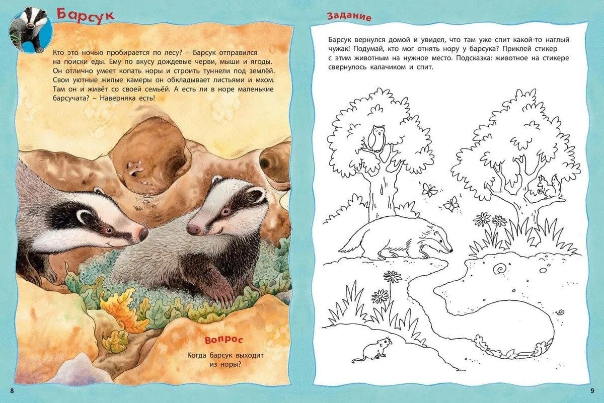This exciting and informative sticker book contains puzzles and attention tasks, as well as coloring pages and questions about animals that live in the forest. See if you know them well?