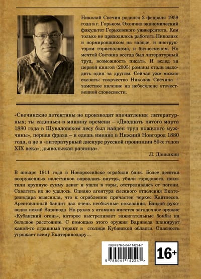 In January 1911, a bank was robbed in Novorossiysk. More than a dozen armed robbers burst in, killed a police officer, stole a large sum of money, and fled into the mountains, firing back. They were never captured. However, agents from the Yekaterinodar detective department discovered that a Circassian named Kaitlesov was involved in the robbery. The arrested bandit gave a very unusual testimony. The gang was led by a certain Varivoda. The ataman possessed a mysterious weapon called "Kuban Fire," which fired incendiary bombs over a long distance. Using this weapon, Varivoda was planning some kind of terrifying terrorist attack in the capital of the Kuban region. The danger threatened all of Yekaterinodar...