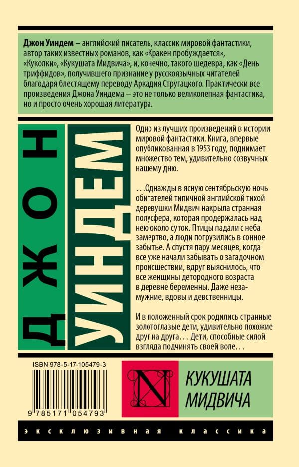 ...One clear September night, the inhabitants of the typical English quiet village of Midwich were struck by a strange hemisphere, which remained above them for about twenty-four hours. Birds fell from the sky dead, and people fell into a sleepy oblivion. A couple of months later, when everyone had already begun to forget about the mysterious incident, it suddenly became clear that all the women of childbearing age in the village were pregnant. Even unmarried, widows and virgins. And in due time, strange golden-eyed children were born, surprisingly similar to each other... Children who could subjugate their will by the power of their gaze....