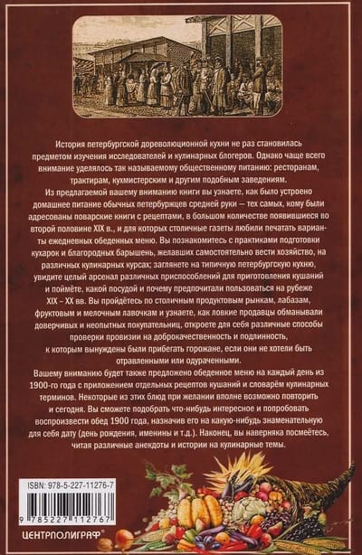 This book will reveal the home cooking habits of ordinary, middle-class St. Petersburg residents—the very people for whom the cookbooks with recipes that appeared in abundance in the second half of the 19th century were addressed, and for whom the capital's newspapers loved to publish daily lunch menus.