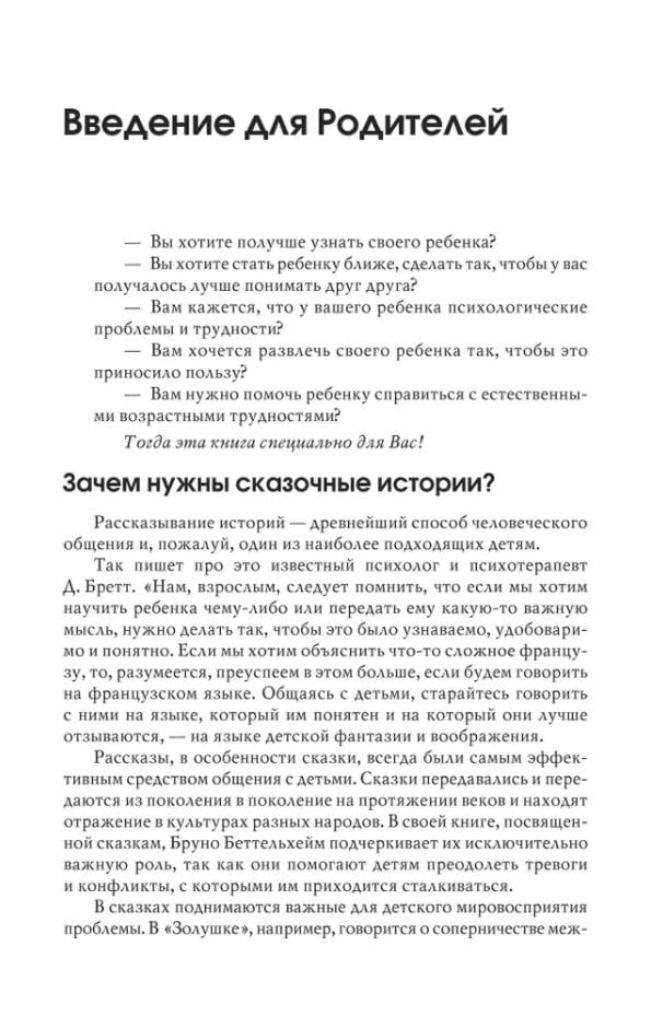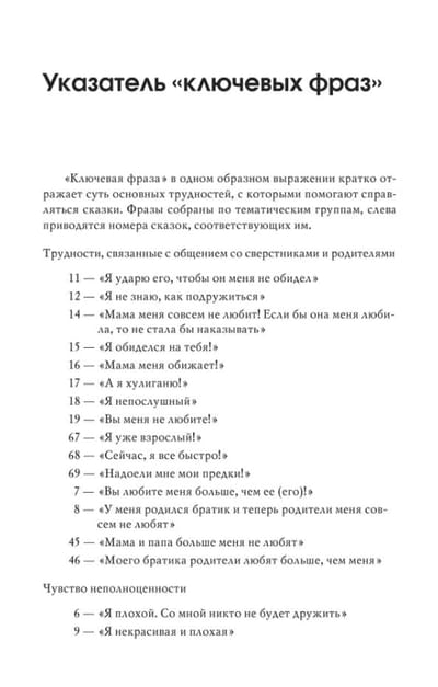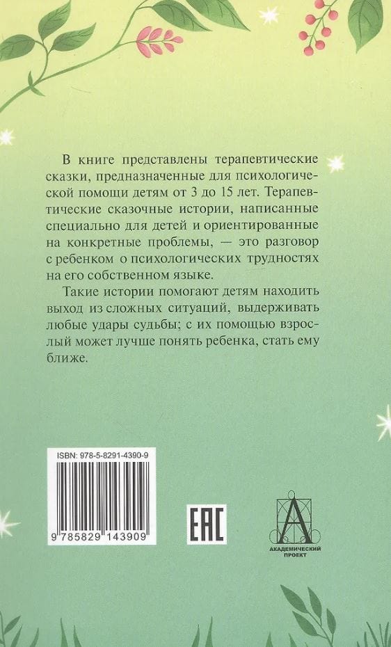 The book presents therapeutic fairy tales intended for psychological assistance to children from 3 to 15 years old. Therapeutic fairy tales, written especially for children and focused on specific problems, are a conversation with a child about psychological difficulties in his own language.