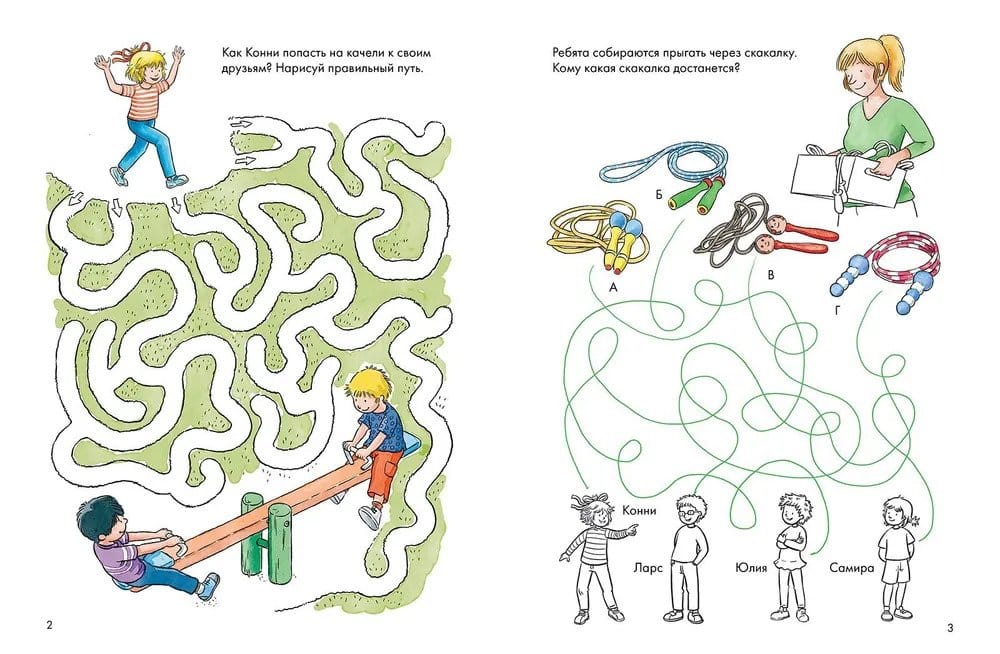 Books with tasks from the "Connie's Best Friend" series playfully familiarize children with the world around them, help them develop fine motor skills, practice writing, counting, reading, and learn useful skills.