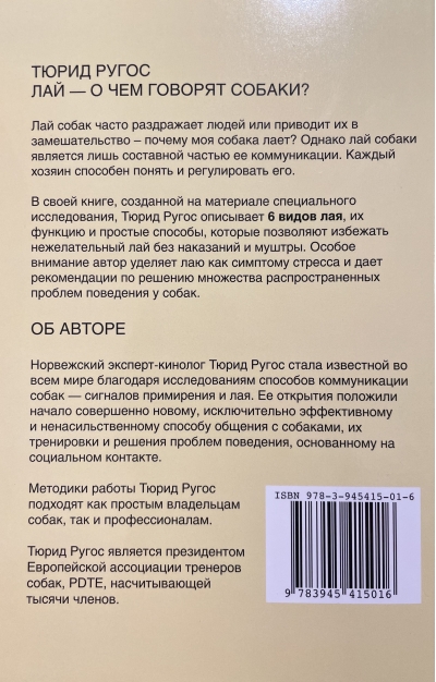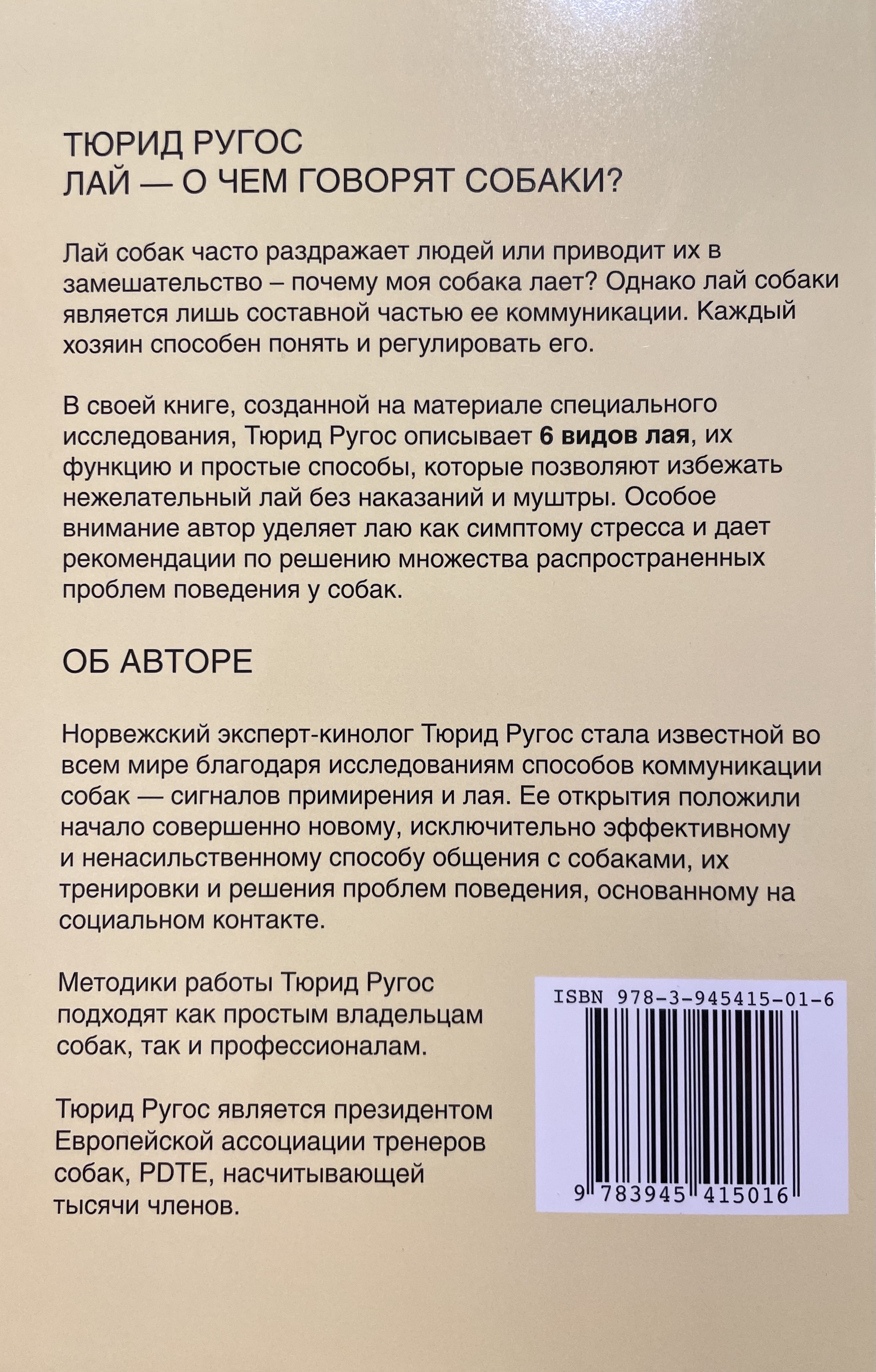 Dog barking often irritates and confuses people, sparking heated arguments. However, a dog's barking is simply a component of their communication. Every owner can understand and regulate it. In his book, based on specialized research, Turid Rugos describes six types of barking, their functions, and simple, gentle ways to avoid unwanted barking without resorting to violence. The author pays special attention to barking as a symptom of behavioral problems and provides appropriate recommendations. Since barking is an indicator of a dog's well-being, the book also includes advice on addressing other behavioral issues.