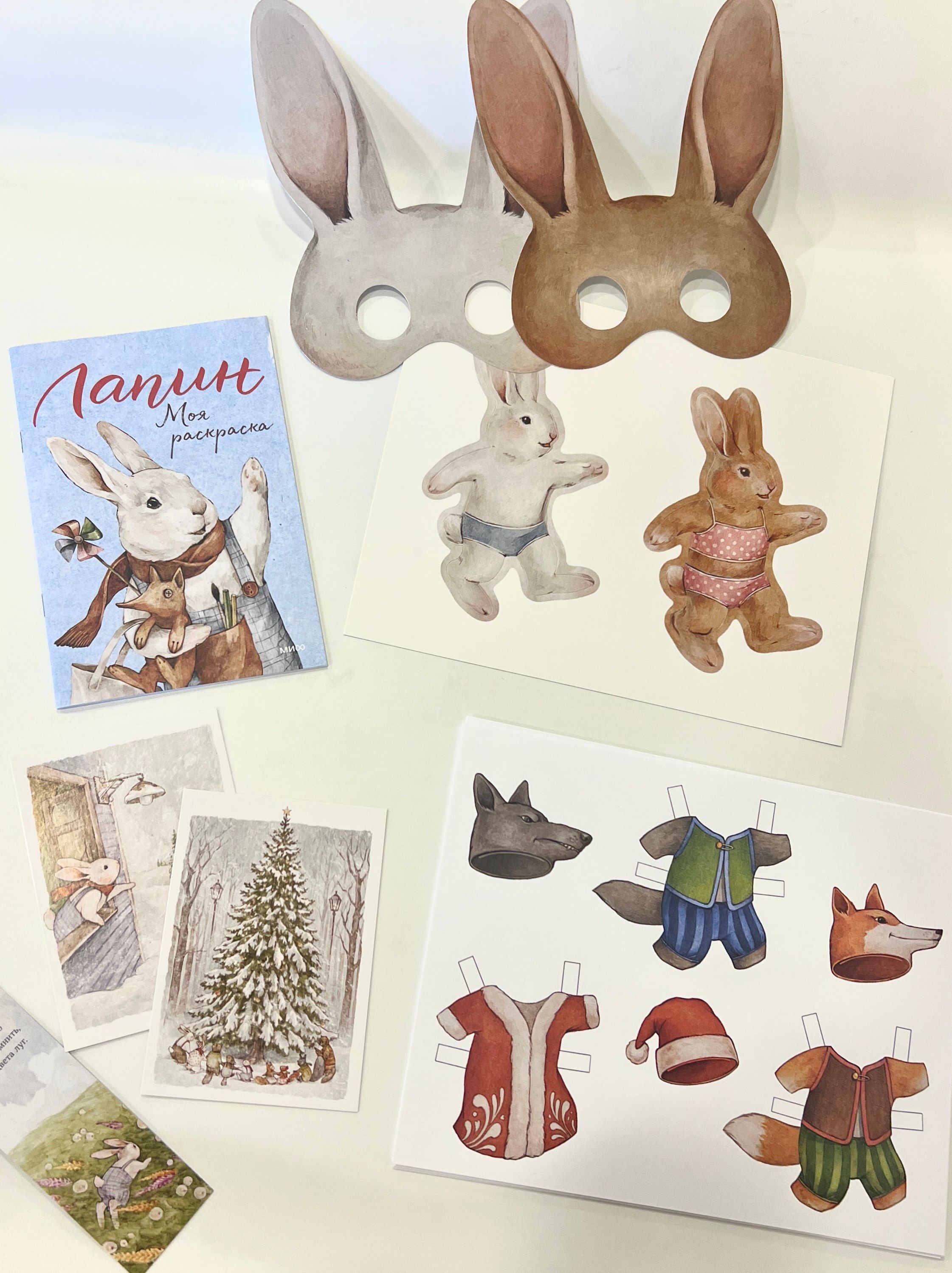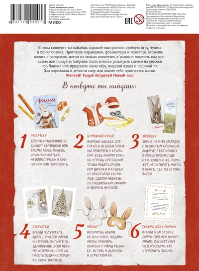 This set will help you have fun while waiting for the holiday and even organize a real carnival! The envelope contains paper dolls and many different clothes for them, coloring, masks, postcards, a bookmark and a letter to Santa Claus.