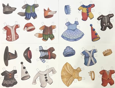 - 13 sheets with clothes for dolls