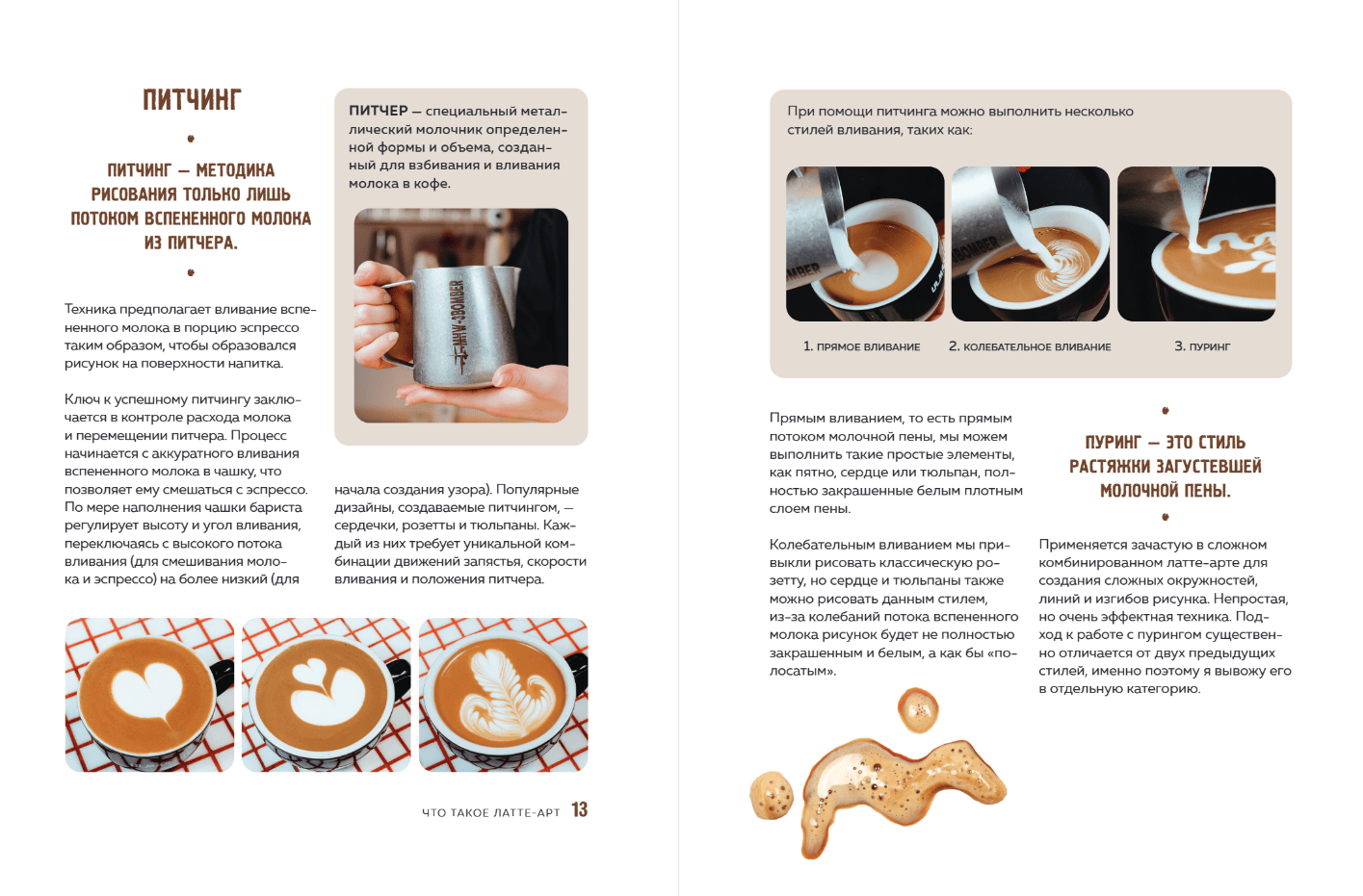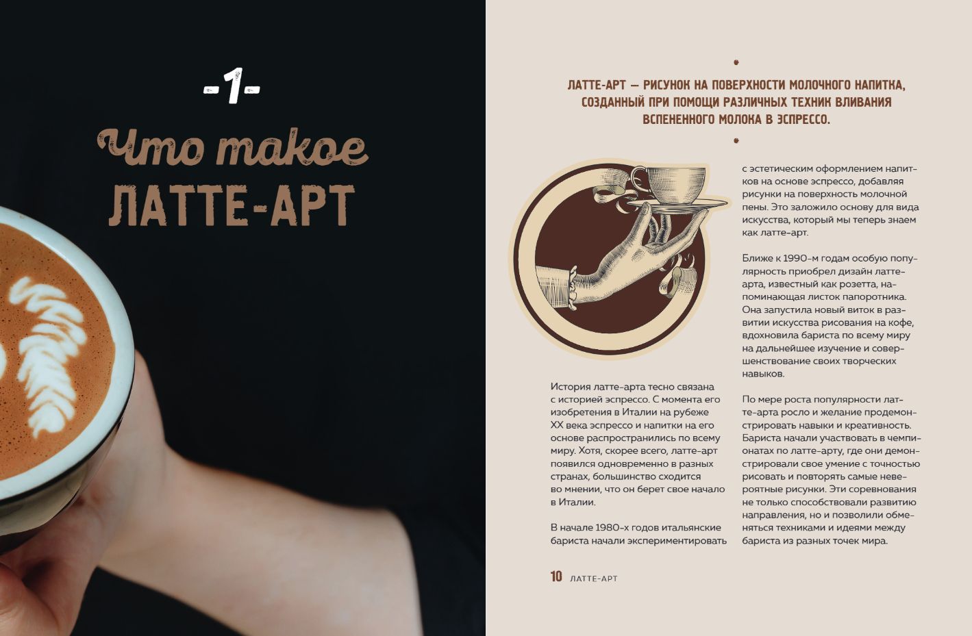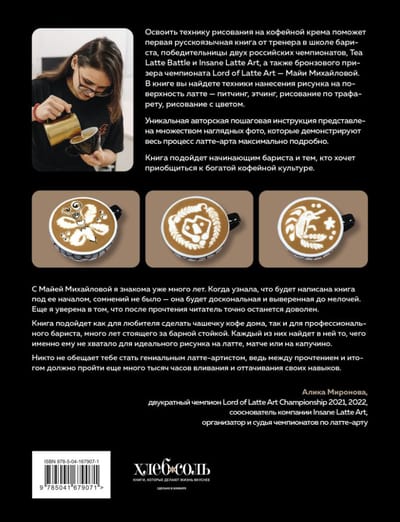 If you love coffee, know how to cook it and want to pump your skill to make it not only tasty, but also beautiful, then this book is for you! Master the art of latte art together with Maya Mikhailova - coach at the barista school "Brew Riot", as well as the chef of the company "Face to Face Coffee!" The author will tell about the art of painting on coffee foam (cream) and introduce you to various types of latte art, techniques and necessary equipment. You will learn how to correctly whip milk foam, determine the desired temperature of the drink, prepare the base, and also learn how to properly hold your hands when working, how to pour a drawing and what conditions are necessary for successful latte art. The book presents step-by-step master classes on drawing various ornaments on coffee foam, which will later help you create unique and unique designs. Become a true master of latte art!