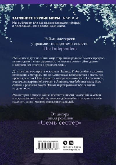 Emily inherits an old family chateau with beautiful gardens and vineyards on her father's side, but along with it a lot of debt and unanswered questions about the family's past. Before that, she led a simple life in Paris. Emily had a complicated relationship with her mother and had no plans to return to the places where she spent her childhood. However, the death of her mother and an encounter with Sebastian, an art gallery owner in London whose grandmother was also connected to Emily's ancestral home, redraws her life into a before and after.