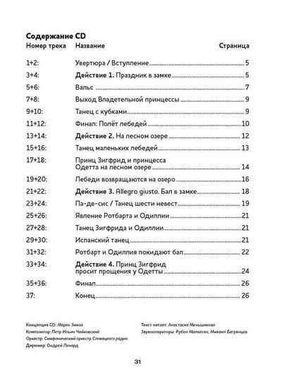 Enchanting sounds of music and fairy tale world on the pages of children's books! We present a collection that will not leave any adult or young reader indifferent! In the books of this series you will find a unique combination: librettos of the most famous masterpieces of world musical classics, adapted for children of preschool and primary school age, supplemented with a disk with melodies from the works themselves and interesting comments. The text is read by Anastasia Menshikova. The audio track was prepared with the participation of the staff of the Moscow Drama Theater named after M. N. Yermolova. "Swan Lake" is a world-famous ballet by the great Russian composer Pyotr Ilyich Tchaikovsky, telling a marvelous fairy tale about a prince in love, an enchanted girl and an evil wizard.
