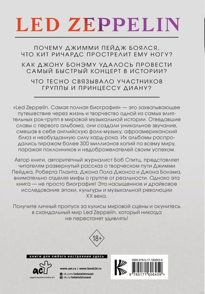 How did John Bonham manage to hold the fastest concert in history? What was the close bond between the band members and Princess Diana? "Led Zeppelin. The Most Complete Biography" is a fascinating journey through the life and work of one of the most influential rock bands in world music history. Rising to fame from their first album, they created a unique sound, blending English folk music, African-American blues and the raw power of hard rock. Their albums have sold more than 300 million copies worldwide, astounding fans and detractors alike with their success. Author Bob Spitz, a respected journalist, provides readers with a detailed account of the creative paths of Jimmy Page, Robert Plant, John Paul Jones and John Bonham, carefully separating the myths of the band from the reality. However, this book is more than just a biography. It is a rich and driving exploration of the era, culture, and musical revolution of the 20th century. Get a personal backstage pass to the world stage and delve into the scandalous world of Led Zeppelin, which will never cease to amaze.