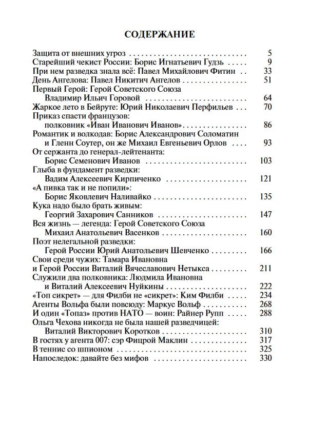 A new book by a well-known author is dedicated to the 100th anniversary of the creation of the domestic foreign intelligence agency INO - PSU - SVR. Its main feature: new, newly discovered heroes, mostly illegal intelligence officers. Some of them, as well as their wives and combat companions, the author knew personally. You will get acquainted with the Hero of the Soviet Union Mikhail Vasenkov, who went into intelligence in the second half of the 1970s, with the Heroes of Russia Yuri Shevchenko and Vitaly Netyksa and several other outstanding scouts, whose exploits literally until the last months were under the cover of "Top Secret", learn the name of the first postwar Hero of the Soviet Union among the scouts. Especially for this book partially declassified personal file of the great Kim Philby and extracted by him the most important documents. You will be introduced to a mysterious illegal from Berlin, who worked under the operational alias "Topaz", about whom the famous General Markus Wolf (and he is present in this book) said that his real name will never be made public, and the author gives the most frank confession of this fantastic scout. In Scotland, the author communicated with the prototype of James Bond - Sir Fitzroy Maclean, who under the guise of a diplomat worked in Moscow back in the 1930s and ended his successful career in the 1990s.