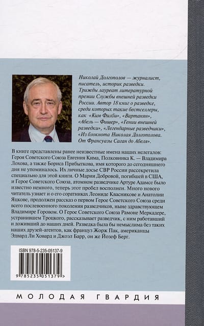 In the new book by the famous writer, three times winner of the SVR literary prize named after E. Primakov, the reader will discover the previously unknown names of our illegals: Hero of the Soviet Union Yevgeny Kim, Colonel K. - Vladimir Lokhov, as well as Boris Pribytkov, whose name has not been mentioned until today. Their personal files were declassified by the Russian Foreign Intelligence Service especially for this book. Two more illegal aliens - Maria Dobrova, who died in the U.S., and Hero of the Soviet Union, atomic scout Arthur Adams was known to an offensive little. Now this gap in the history of Russian intelligence has been filled. A lot of new readers will learn about his fellow atomic intelligence - Heroes of Russia Leonid Kvasnikov and Anatoly Yatskov. The author also continued the story begun in "Legendary scouts-3" about the first Hero of the Soviet Union among the entire postwar generation of scouts, now alive Vladimir Gorov. It would seem that everything is known about the Hero of the Soviet Union Ramon Mercader, who eliminated Trotsky. But in the chapter about him, the word is given to the scout who worked with him and lived to this day. Intelligence would be unthinkable without our friends-agents such as Frenchman Georges Pak, Americans Edward Lee Howard and Joel Barr, aka Joseph Berg. New facts and unknown episodes about their work are also given in the book.
