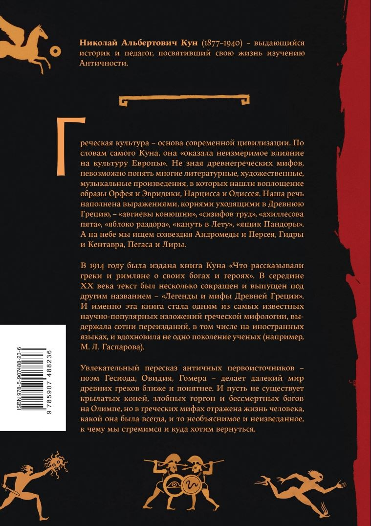 Over a hundred years ago, Kuhn's book, "What the Greeks and Romans Said of Their Gods and Heroes," was published. In the mid-20th century, the text was slightly abridged and reissued under a different title, "Legends and Myths of Ancient Greece." This book became one of the most famous popular science accounts of Greek mythology, having undergone hundreds of reprints, including in foreign languages, and inspired generations of scholars (for example, M. L. Gasparov). A captivating retelling of ancient sources—the poems of Hesiod, Ovid, and Homer—makes the distant world of the ancient Greeks closer and more understandable. While winged horses, evil gorgons, and immortal gods may not exist on Olympus, Greek myths do reflect human life as it has always been, as well as the inexplicable and unknown to which we aspire and to which we long to return.