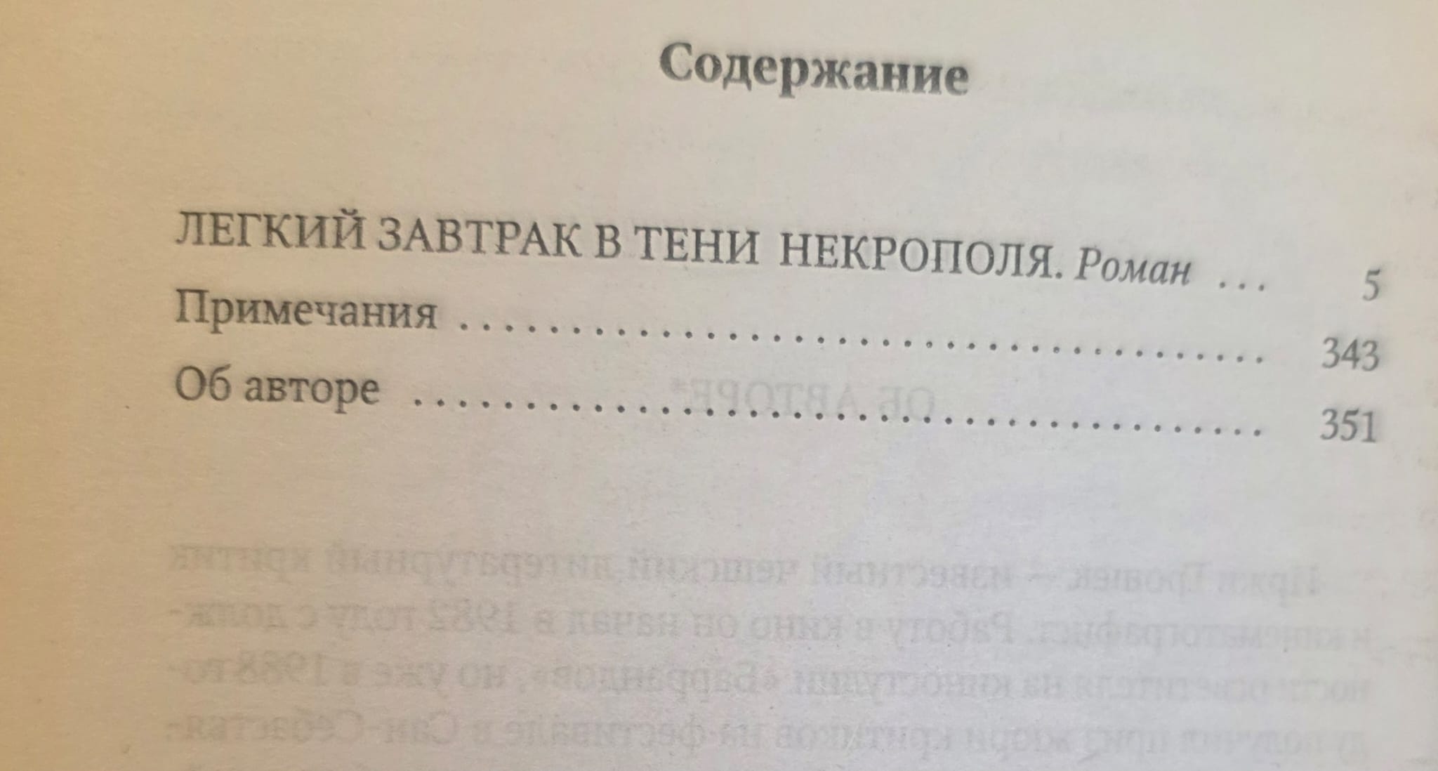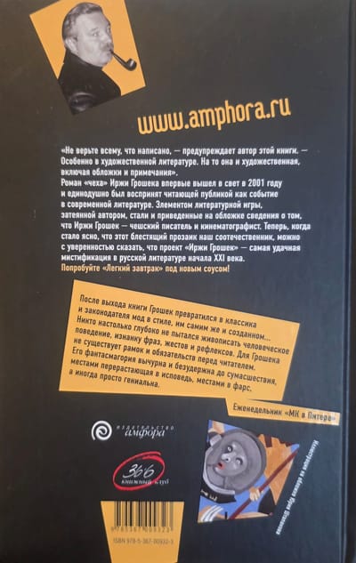 The first part of Jiří Hrošek's trilogy, comprising "Light Breakfast in the Shadow of the Necropolis," "The Great Lunch Restoration," and "Five O'Clock." First published in 2001 as a novel by "a Czech writer and filmmaker," "Light Breakfast..." launched the most successful hoax in Russian literature of the 2000s.