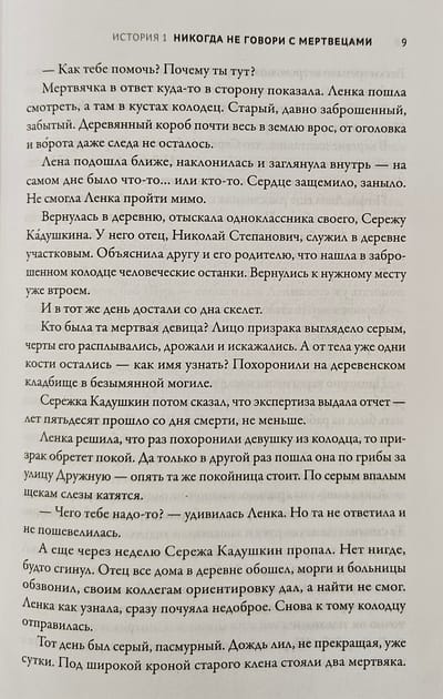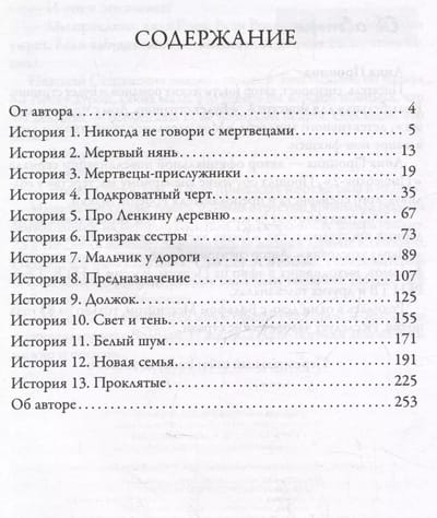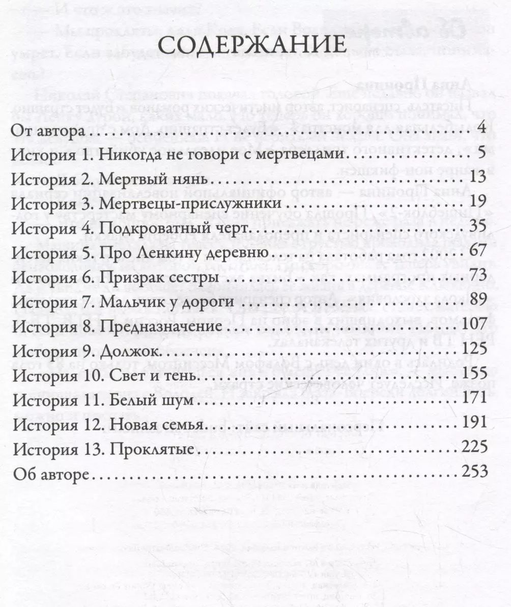 Lenka is an ordinary village girl... with the gift of a medium. She sees the dead, just like the hero of the movie “Sixth Sense”, and is convinced that this gift brings her only trouble. Nevertheless, it is thanks to him that she involuntarily solves crimes in which paranormal forces are involved. Each of the 13 stories in the book reveals a mysterious murder or disappearance. Classic folk horror from the author of "Pishcheblock-2" and telegram channel "It will be scary." A mystical story about a village girl who sees restless souls, in which there was a place not only for ghosts, curses and the living dead, but also for reasoning about the intricacies of fate, kinship and finding oneself.