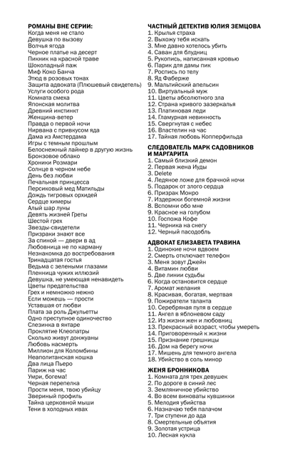 Zhenya Bronnikova has fallen in love, and she is not happy about her feelings: after all, her husband Boris and young son are waiting at home, and her heart is captured by a handsome investigator Pavel Zhuravlev, who very much requests that Zhenya take part in the investigation of a mysterious case. The case is very complicated: in the woods near the village of Sapronovo found the body of a young woman dressed in a dress of children's colors. At the same place twenty years ago, a girl in exactly the same dress disappeared, and all the strings of the crime lead to the IT guy Yuri Agnevsky.