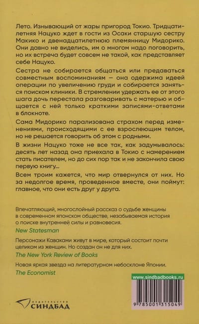 Natsuko herself came to the capital ten years ago. She wanted to become a writer, but has never finished a book until now. It seems to the three women that the world has turned its back on them... However, during the few days they spend together, they will realize the main thing: they have each other.