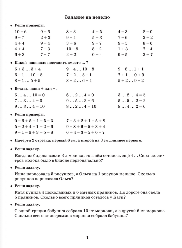 The manual offers tasks for repeating and consolidating the material for the entire course of mathematics for grade 1. The materials of the book are divided into several parts. Each block of practical tasks is followed by a "theoretical" page with the necessary rules. If a child spends 1 hour a week on these tasks, he will successfully repeat the material, develop mathematical and logical thinking. Regularly referring to the material of these books, the student will bring to automaticity the ability to solve problems, examples, inequalities, firmly remember the mathematical rules that are part of the program of elementary school. The manual can be used for collective and individual work in class or at home.