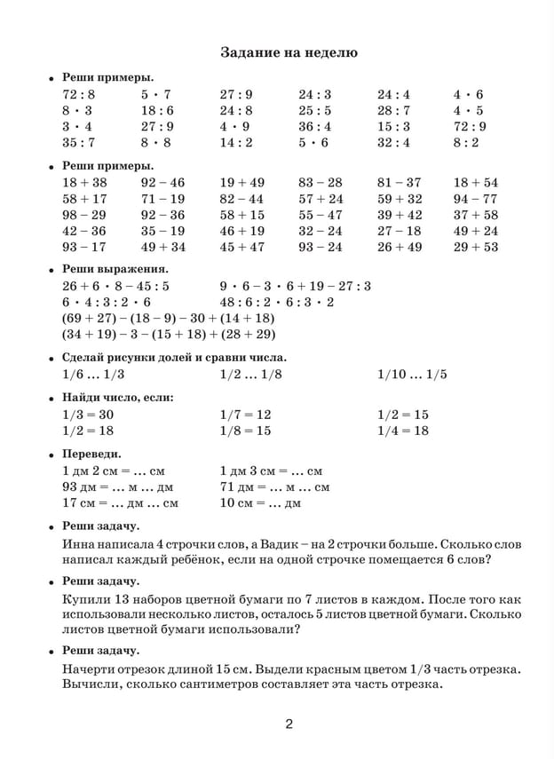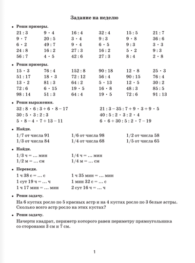 The materials of the book are divided into several parts. Each block of practical tasks is followed by a "theoretical" page with the necessary rules. If a child spends 1 hour a week on these tasks, he will successfully repeat the material, develop mathematical and logical thinking. Regularly referring to the material of these books, the student will bring to atomatism the ability to solve problems, examples, inequalities, firmly remember the mathematical rules that are part of the program of elementary school. The manual can be used for collective and individual work in class and at home.