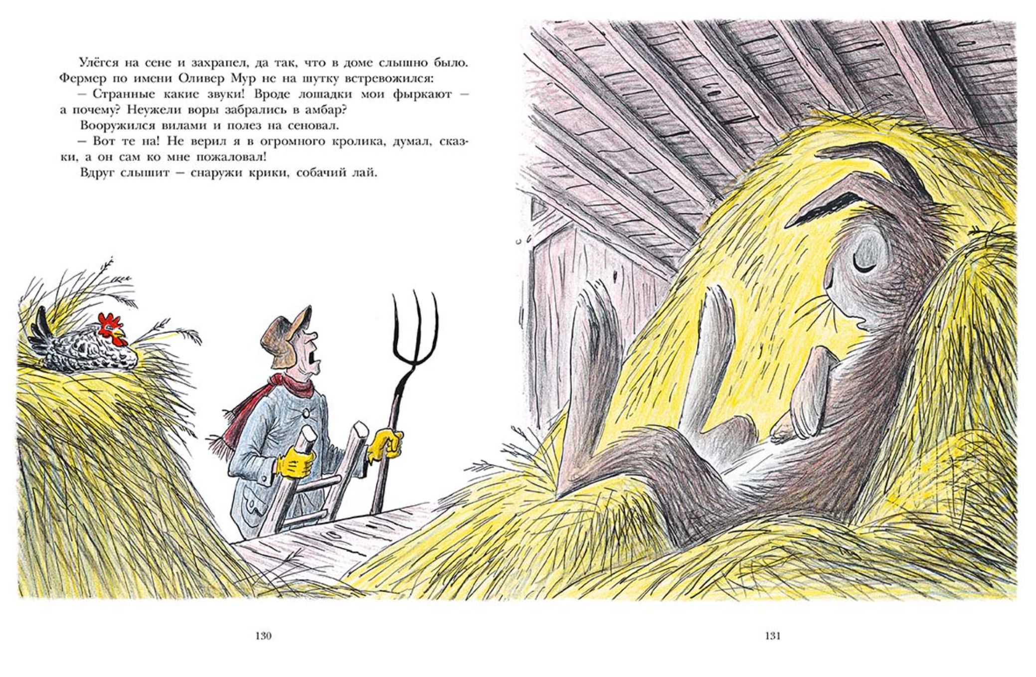 A happy childhood ended when Edwin the rabbit began to grow by leaps and bounds. His burrow became too small for him, and his parents, in tears, escorted their beloved son into the dense forest, the only place such a giant could hide. But even there, Edwin found no refuge; he barely escaped the owls, foxes, and ferrets. And for the farmers, he proved a coveted prize, chasing the giant rabbit across the fields until winter. But, as we know, the world is not without kind people. One farmer, whose barn the unfortunate Edwin had crawled into to warm up, took the poor fellow in. And in the spring, he invented such an activity for him that Edwin became famous throughout the region.