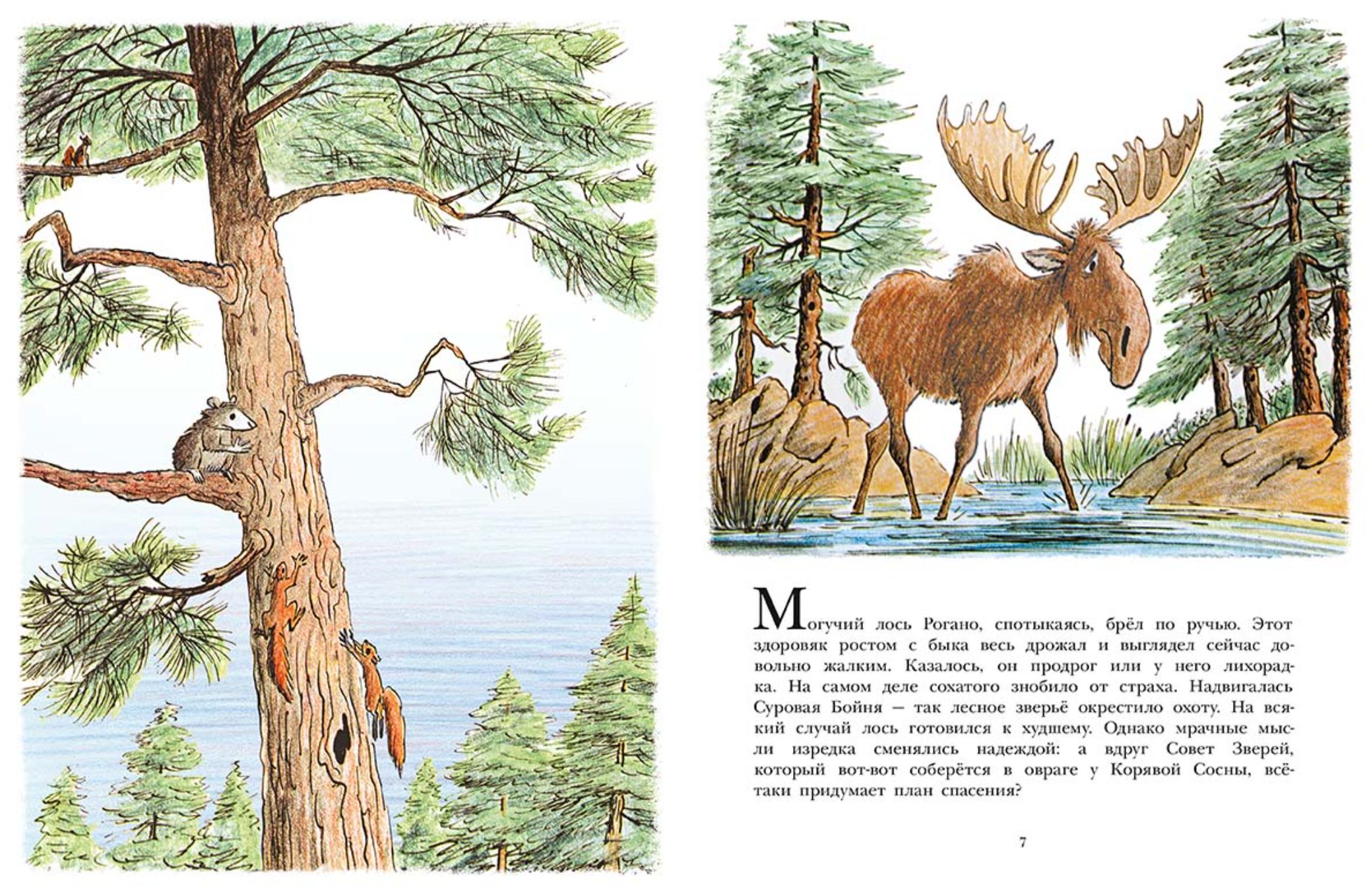 The Great Slaughter was approaching—that's what the forest dwellers called the hunt. The Beast Council had gathered in the ravine near Gnarled Pine. Everyone hoped that a clever fellow would come up with a brilliant rescue plan. But that didn't happen, and the animals decided to flee the hunter's bullet alone, as best they could. And for some of them, the next day could well have been their last, if not for a brave mosquito named Squeaky the Bull, whom at first no one wanted to listen to... In the dedication to this book, Bill Peet wrote: "To my little friends who love to play war." I hope that when you grow up, you'll stop loving this. Because real guns with real bullets really kill."