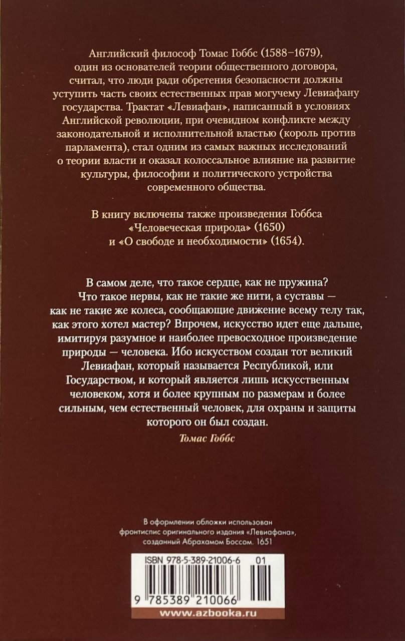 The book also includes Hobbes's works Human Nature (1650) and On Liberty and Necessity (1654).