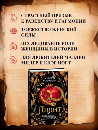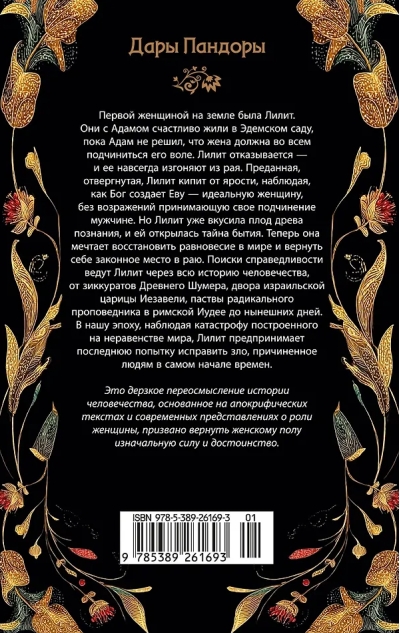 Insulted by Adam, expelled from Eden, Lilith gains wings and sets out in search of the Mother Goddess Asherah, who gives life and wisdom. For many centuries, she wanders across countries and continents, communicates with gods and goddesses, descends into the underworld and joins the magnificent royal courts, witnessing with her own eyes how women are everywhere reduced to a slave position. But this does not suit the freedom-loving Lilith, and she is determined to turn the tide and return the divine wisdom to the female sex that it has lost.